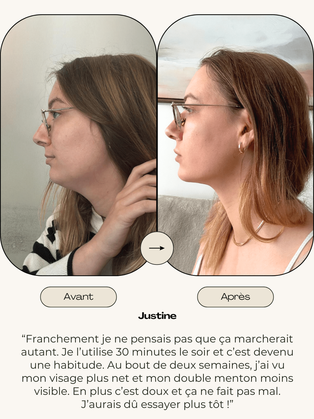 👉En 2 semaines : une peau plus tonique, un double menton visiblement estompé.